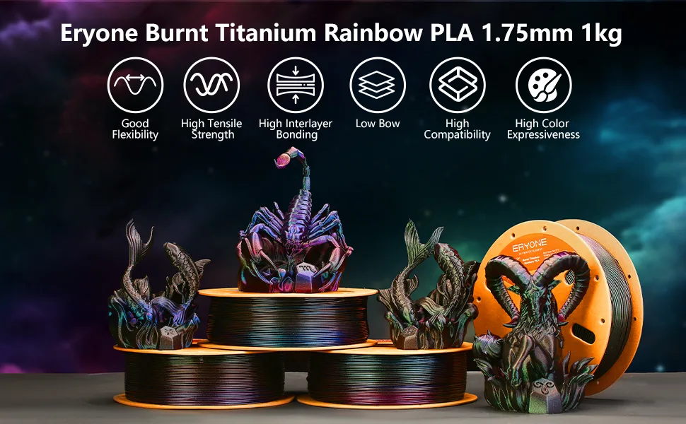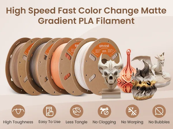 ERYONE Matte PLA Bundle – Watercolor Rainbow + Matte Black & White (Save 10%)