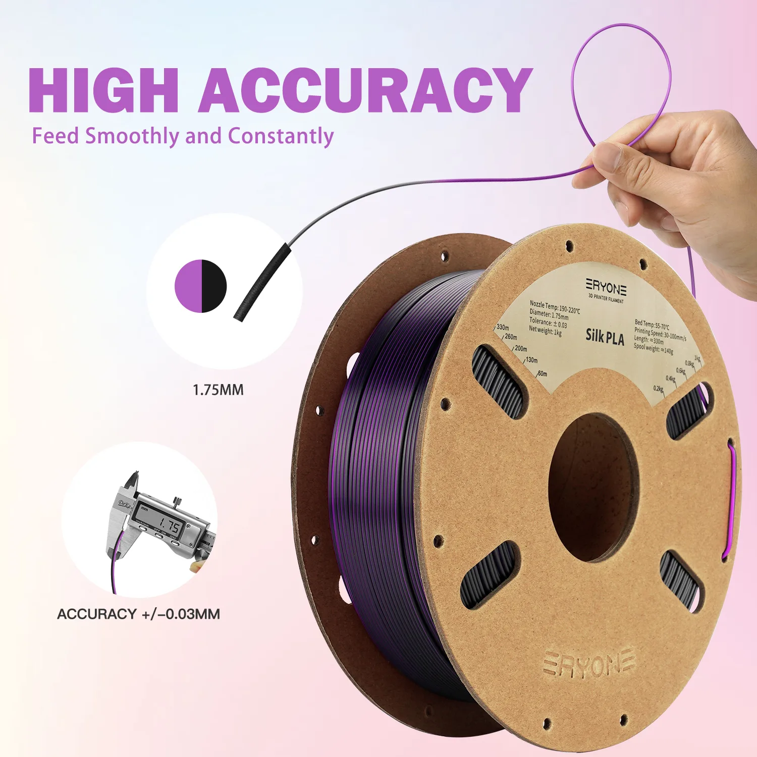 Create dramatic, high-quality 3D prints with the ERYONE Dual Color – Black & Purple Silk PLA Filament. This premium filament features a striking blend of deep black and rich purple, providing a stunning dual-color effect with a glossy silk finish. Perfect for artistic, decorative, and functional prints, this filament ensures smooth, consistent extrusion for flawless results in every project.