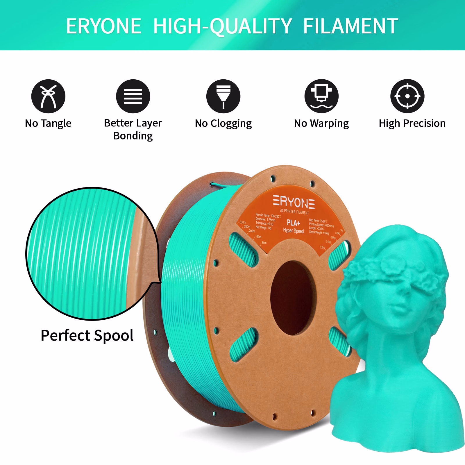 ERYONE Hyper PLA+ Mint Green Filament – 1.75mm, 1kg