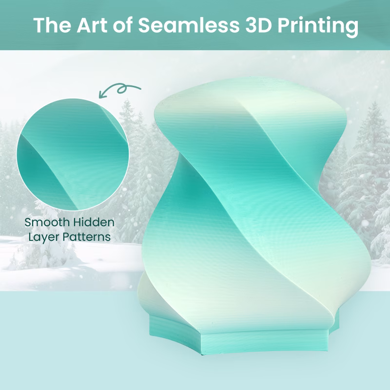Experience gentle, winter-themed colour transitions with ERYONE Hyper Speed Matte Gradient Rainbow PLA – Snowfield, a premium filament engineered for breathtaking aesthetics and ultra-fast printing. Inspired by frosty landscapes and snowy mornings, Snowfield delivers a soft, pastel rainbow gradient featuring subtle transitions of icy blues, frosted purples, pale teals, whites, and cool tones—creating elegant, dreamlike prints straight off the bed.