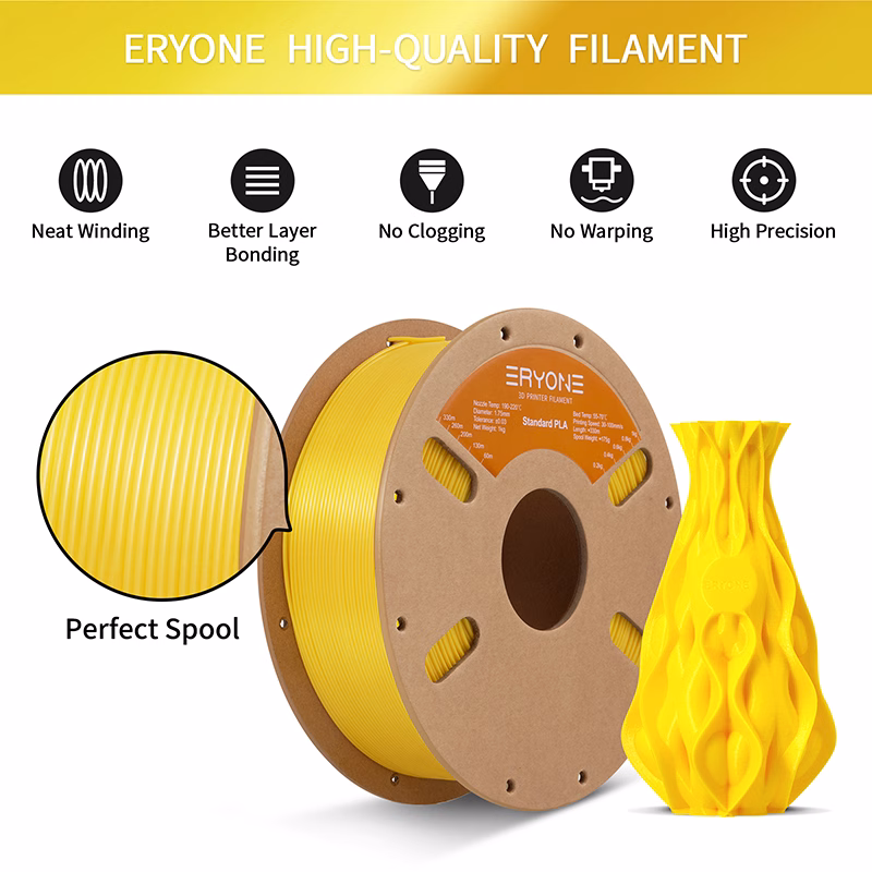 Whether you’re creating eye-catching designs or running reliable daily prints, ERYONE Standard PLA Yellow delivers consistent results, bright colour, and excellent value on every spool.