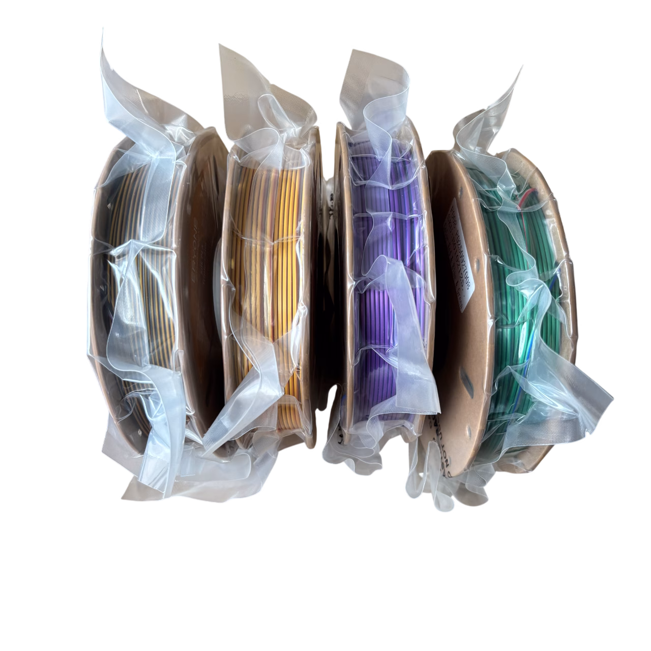 Each spool weighs 250g, giving you a total of 1kg of filament across four unique tri-color combinations. The tri-color extrusion process fuses three colours into a single filament strand, allowing prints to display multiple colours simultaneously. As the printed model rotates or catches light from different angles, different colours become visible, creating dramatic visual effects without the need for painting or post-processing.